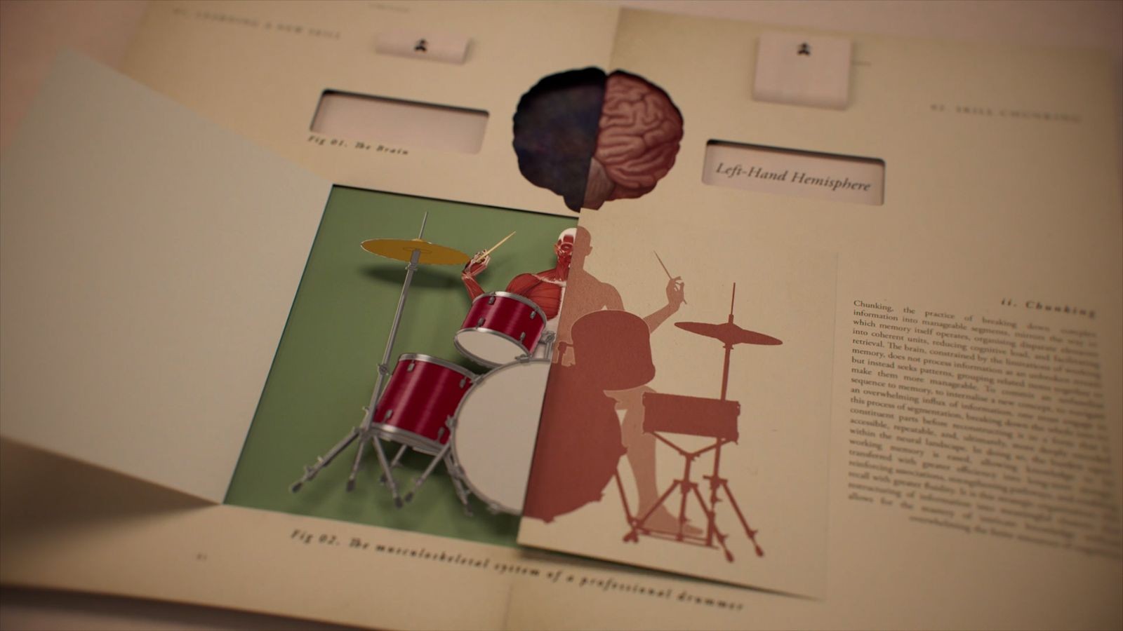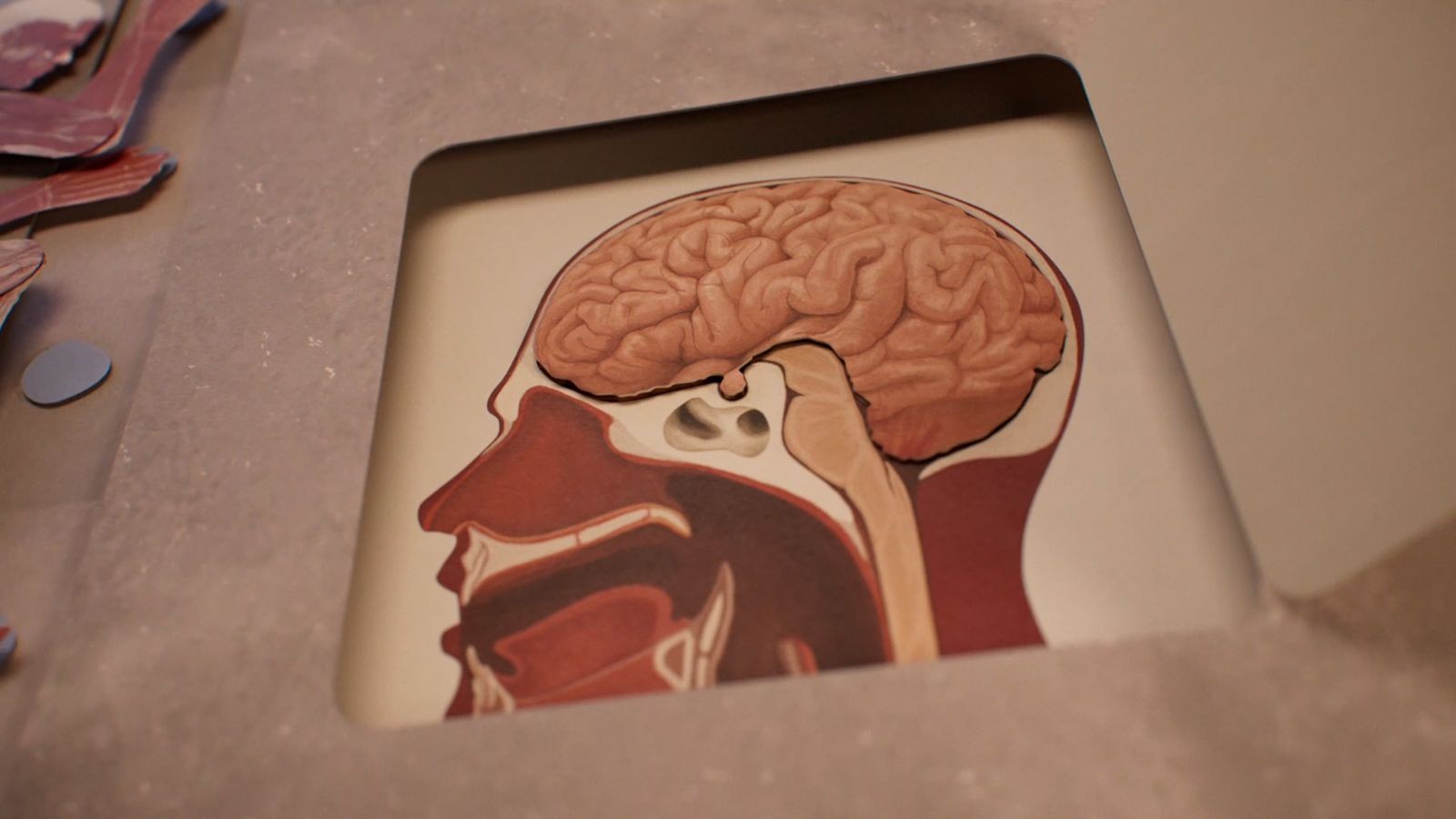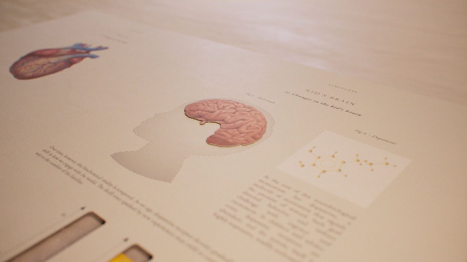 The overarching style of a medical pop up book was retained but with a slightly less hectic schedule and an increased focus on the brain, allowed us to explore new and interesting ways to showcase science within our animations.